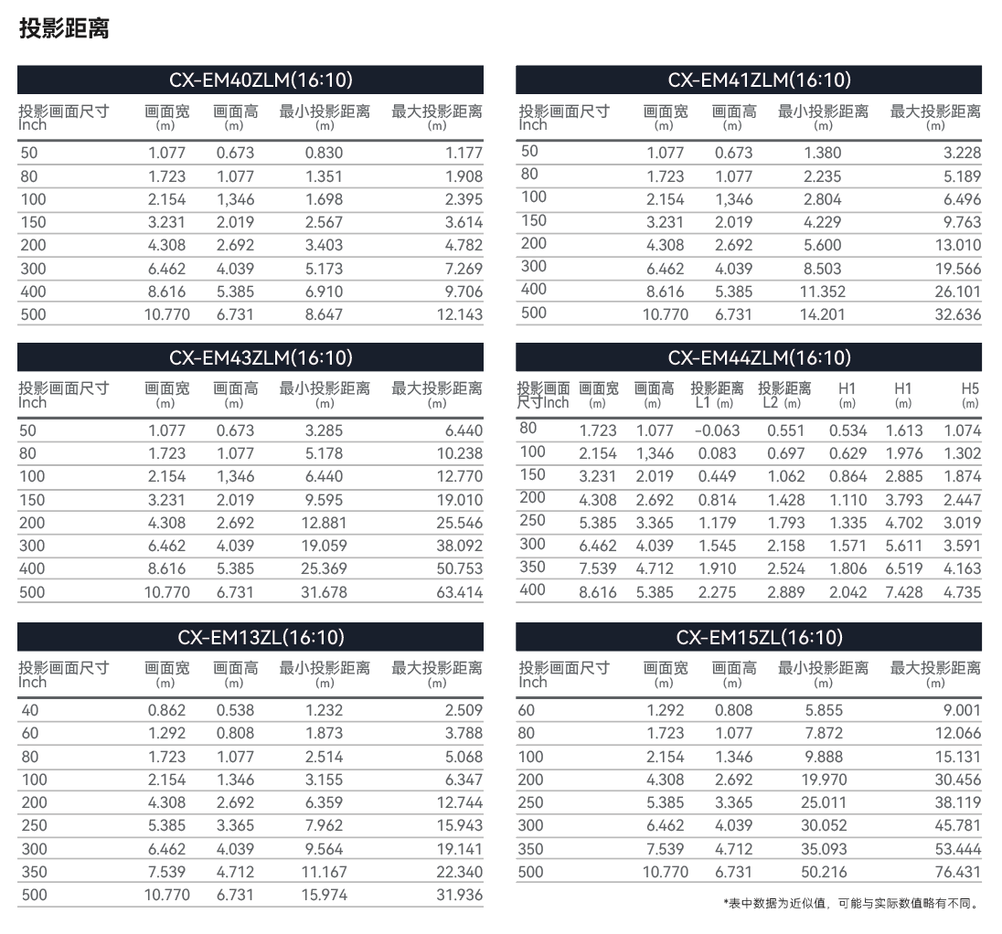 | 投射比 | 1.30-3.02 (标镜) | |