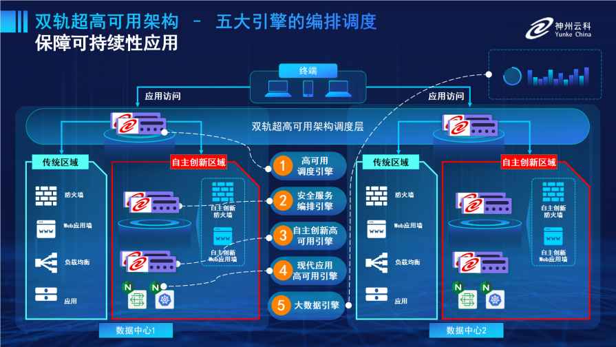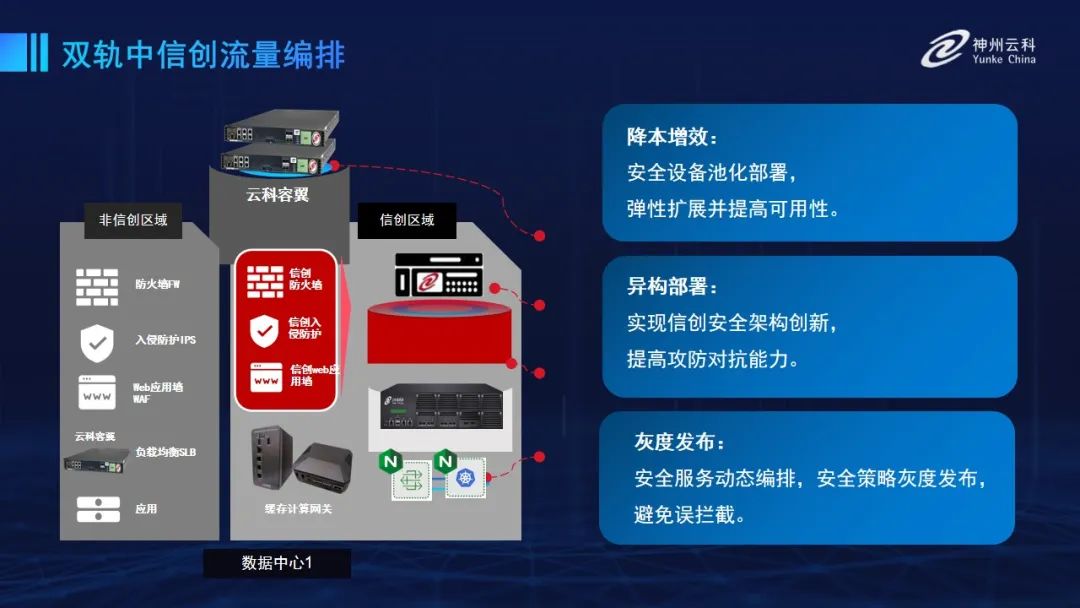 为满足数据中心双轨建设信创区和非信创区跨域协同,神州米兰电竞通过5大引擎实现双区无缝切换,跨域协同。